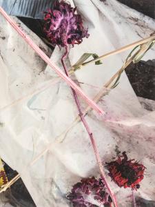 [Pink flowers against white plastic]