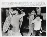 - Saigon: A Buddhist youth (R), already in the grasp of a Vietnamese riot policeman, cringes as another policeman raises his stick to strike the boy late 5/25 here, during a clash between police and a small group of teenagers. The city of Saigon was virtually turned into an armed camp 5/25, as South Vietnamese combat troops poured into the streets, wearing gas masks, and dispersed any group of persons they encountered.