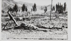 - South Korea: 81mm mortar position just north of Yongdong appears deserted as gun crews crouch in their foxholes under heavy enemy artillery fire.