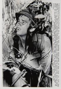 - Plei Me, S. Viet Nam: Keeping sharp watch on tree tops for Viet Cong snipers, a U.S. 1st Air Cavalry Division trooper and comrades move cautiously through tall grass 11/22. American forces are continuing operations along the Cambodian border, west of here, in pursuit of Communist remnants of the Chu Pong and Ia Drang battles, and fresh troops.