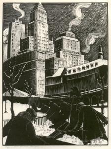 Skip to main content Collections MenuExpandMy CollectionView PDFSnow Shovelers, New YorkPreviousNext 300 x 300 (Download)Snow Shovelers, New YorkArtist Clare Leighton (American, born England, 1898 - 1989)Date1929ClassificationsPrintMediumWood engravingDimensions8 × 6 in.Credit LineMuseum purchaseObject number1982.002 Discover More Breadline, New YorkClare Leightoncirca 1931 - 1932A Rainy SundayClare Leightoncirca 1970The Martyrdom of Brother JuniperClare Leighton1929CavtatClare Leighton1927ThreshingClare Leighton1926[Woman and boy walking]Clare Leighton1928[Seated woman braiding her hair]Clare Leighton1928The pigeons were flying about her headClare Leighton1928[Man and woman walking and holding hands]Clare Leighton1928[Seated woman with a baby in a cradle]Clare Leighton1928[Standing woman]Clare Leighton1928[Landscape]Clare Leightonno date Powered by eMuseum