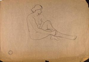 [Seated nude woman with one knee bent]