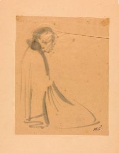[Kneeling figure in profile]