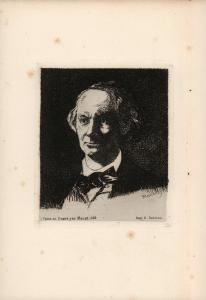 Skip to main content Collections MenuExpandMy CollectionDownload 300 x 300 (Download)View PDFCharles Baudelaire, de FacePreviousNext 300 x 300 (Download)Charles Baudelaire, de FaceArtist Edouard Manet (French, 1832 - 1883)Date1869ClassificationsPrintMediumEtchingDimensions3 13/16 × 3 1/4 in.Credit LineMuseum purchaseObject number1981.0134E Discover More Image Not Available for Profile Portrait of BaudelaireProfile Portrait of BaudelaireEdouard Manet1869Portrait of Berthe MorisotEdouard Manet1872OdalisqueEdouard Manet1880 Image Not Available for Portrait of Charles BaudelairePortrait of Charles Baudelaire1869 Image Not Available for Charles Baudelaire, Sa Vie et Son OeuvreCharles Baudelaire, Sa Vie et Son OeuvreCharles Asselineau1869Poster for Ferme de FrahingazEdouard Duyck1894Loyer et me de Gramance Edouard Léon Louis Edy-Legrand20th centuryArc de Triomphe du Carrousel, Tuileries, ParisEdouard-Denis Balduscirca 1855 - 1860Landscape and Cattle (after painting by Charles Émile van Marcke de Lummen)Peter Morancirca 1879Cromwell s’assurant de la mort de Charles 1Paul Delaroche1911Charles de Gaulle and Alexei Kosygin at the Tomb of the Unknown Soldier during de Gaulle's official visit to the USSR, Kiev, UkraineElliott Erwitt1966Memento Mori. Remember You Will Die. The graveyard is full of indispensable men - Charles de GaulleAmos Paul Kennedy Jr.n.d. Powered by eMuseum