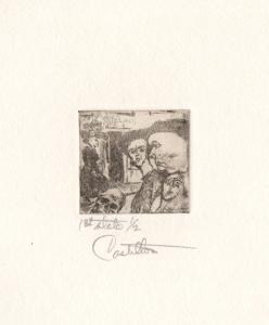 Skip to main content Collections MenuExpandMy CollectionView PDF[Three men, woman and skull]PreviousNext 300 x 300 (Download)[Three men, woman and skull]Artist Federico Castellón (American, born Spain, 1914 - 1971)Date20thClassificationsPrintMediumEtchingDimensions1 3/4 x 1 3/4 in.Credit LineGift of George HowardObject number1970.103 Discover More Untitled, house with three heads in sky, woman on lawnFederico Castellón20th Image Not Available for Nudes, two men and one womanNudes, two men and one womanFederico Castellón20thUntitled, two men in profile, fish coming out mouth of oneFederico Castellón20thUntitled, three standing nudesFederico Castellón20thThree GracesFederico Castellónc 1965Three GracesFederico Castellóncirca 1965Untitled, three squatting figuresFederico Castellón20thThree GracesFederico Castellónc 1965Untitled, three reclining women with stockingsFederico Castellón20thUntitled, three figures in courtyardFederico Castellón20thUntitled, three standing nudesFederico Castellón20th century[Three standing nudes]Federico Castellón20th century Powered by eMuseum
