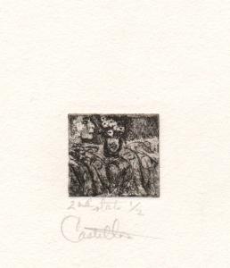 [Figure in profile with flowers to their right]