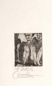 Untitled, three squatting figures