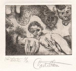 Untitled, two monsters with woman