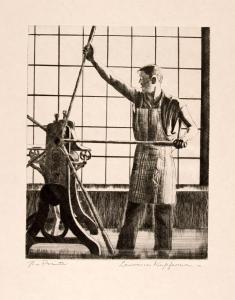 Skip to main content Collections MenuExpandMy CollectionView PDFThe PrinterPreviousNext 300 x 300 (Download)The PrinterArtist Lawrence E. Kupferman (American, 1909 - 1982)Datecirca 1940ClassificationsPrintMediumDrypointDimensions8 3/4 x 6 7/8 in.Credit LineGift of the artistObject number1964.346 Discover More European LandscapeLawrence E. Kupferman1943Samuel Phillips Hall, Phillips Academy, AndoverLawrence E. Kupferman1941European LandscapeLawrence E. Kupferman1942Victorian Carriage HouseLawrence E. Kupferman1940Poseidon Feted by the EthiopiansLawrence E. Kupfermancirca 1936SaxyLawrence E. Kupferman1934Back Bay StreetLawrence E. Kupfermanno dateWinthrop CottageLawrence E. Kupfermanno dateThe Noble Swineherd Bids the Weary Osysseus WelcomeLawrence E. Kupfermancirca 1936SatchmoLawrence E. Kupfermanno dateAbandoned HouseLawrence E. Kupferman1939Pattern of the CityLawrence E. Kupferman1943 Powered by eMuseum