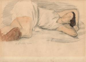 Skip to main content Collections MenuExpandMy CollectionView PDFReclining GirlPreviousNext 300 x 300 (Download)Reclining GirlArtist Raphael Soyer (American, born Russia, 1899 - 1987)Date20th centuryClassificationsPaintingMediumWatercolorDimensionsObject: 10 × 14 15/16 in. (25.4 × 38 cm)Object number1964.479 Discover More Reclining NudeRaphael Soyer1945Girl at WindowRaphael Soyer1941Young Couple Seated At TableRaphael Soyercirca 1948 - 1951 Image Not Available for Woman on CotWoman on CotRaphael Soyer1979 Image Not Available for Nude WashingNude WashingRaphael Soyer1979 Image Not Available for Woman with BraidWoman with BraidRaphael Soyer1979 Image Not Available for MeditationMeditationRaphael Soyer1979 Image Not Available for Nude WashingNude WashingRaphael Soyer1979 Image Not Available for Seated Woman ISeated Woman IRaphael Soyer1979 Image Not Available for Woman with BraidWoman with BraidRaphael Soyer1979 Image Not Available for Barefoot WomanBarefoot WomanRaphael Soyer1979 Image Not Available for MeditationMeditationRaphael Soyer1979 Powered by eMuseum