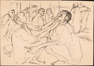 Skip to main content Collections MenuExpandMy CollectionDownload 300 x 300 (Download)View PDFCalcutta-Street BarberPreviousNext 300 x 300 (Download)Calcutta-Street BarberArtist Al Blaustein (American, 1924 - 2004)Date1963ClassificationsDrawingMediumInkDimensions15 x 21 1/2 in.Credit LineGift of Lotte and Al BlausteinObject number1964.577 Discover More Calcutta HighwayAl Blaustein1963Tailor-AgraAl Blaustein1963Shoemaker's FamilyAl Blaustein1963Japanese BartenderAl Blaustein1962Female ImpersonatorAl Blaustein1962BearerAl Blaustein1963Dressing RoomAl Blaustein1962Chindonya-KyotoAl Blaustein1962Aberdeen HouseboatsAl Blaustein1963Sumi Lesson - still lifeAl Blaustein1962AsaskusasaAl Blaustein1962BatherAl Blaustein1962 Powered by eMuseum