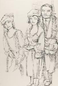Sketch of two women with a man