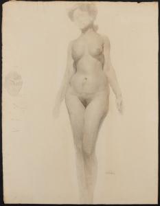 Standing Female Nude (Recto), face of man and male nude (verso);